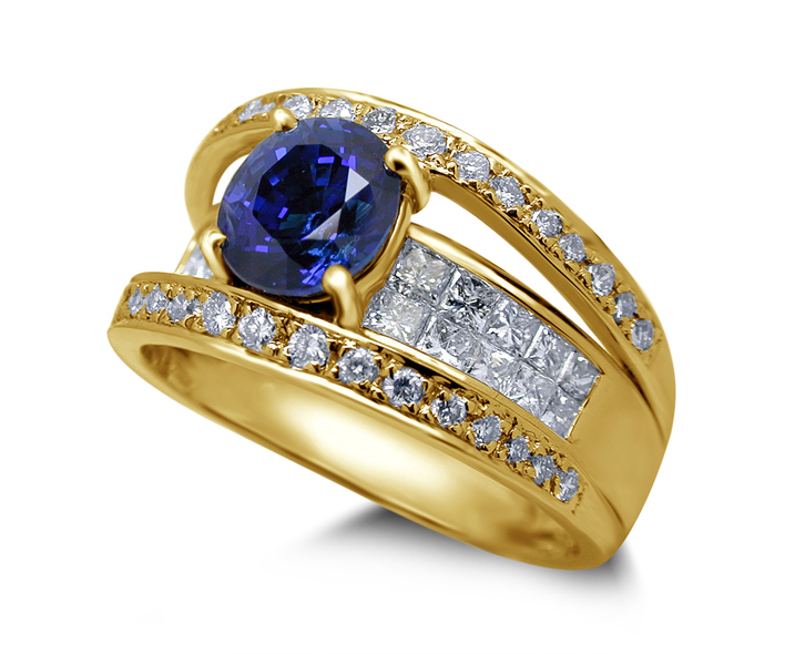18K Yellow Gold Sapphire Ring w/1.20cttw. Diamonds