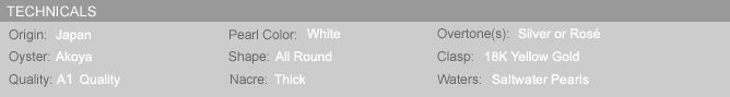 However, the Mikimoto store recently introduced a new line of cultured pearls known as the "ONE" line that have the same exact characteristics as the AAA, AA, A+ and A grading system that you might be familiar with. In fact, this new "ONE" line of cultured pearl necklaces exhibit the exact same luster, bodycolor, shape, nacre thickness and overtones as the AAA, AA, A+ and A pearls. Except within this new "ONE" line of pearls, the pearls are slightly blemished (95% inclusion free) and therefore sell at half the selling price of the unblemished pearl line. Accordingly, this new grading system or "ONE" line offered by Mikimoto is referred to as such: AAA1, AA1, A+1 and A1. Each grade has a numeral one at the end of its label to denote the difference in surface quality from unblemished to blemished.