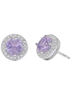 Violets In The Snow, 38 Pts. Diamond Studs & 2 Cts Amethyst Centers