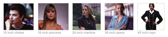 Princess: An industry standard length of a pearl necklace between 17 to 19 inches in length.