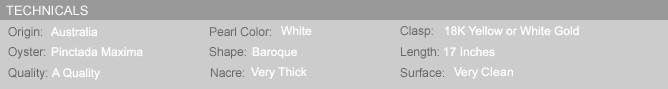 The baroque pearls used in the design are harvested in Australia. They are irregular in shape and each pearl has a unique look. The pearls are carefully matched according to approximate size and color, as well as overall look. This necklace ships within a week of the order being placed and is backed by American Pearl's impressive satisfaction guarantee. A storage box is included for convenience.