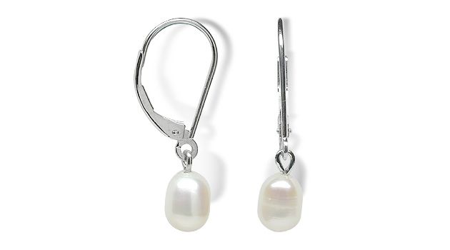These oval 4x6mm freshwater pearls are set on silver leverbacks for extra security. For other dangle pearl earrings check below.