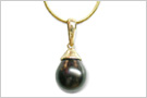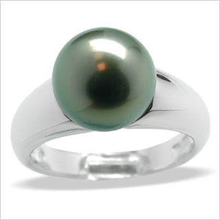 This magnificent natural color black tahitian pearl (8 millimeters in diameter) is set in a 18K white gold high polish setting . You can count on American Pearl to supply you with A quality pearls (the highest of the A, B,C and D grading system for black pearls).