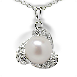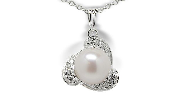 This 7.75mm Japanese Akoya Cultured Pearl pendant is designed in a 14K white gold and diamond setting. This modern and stylish pendant is great for all occasions. This pendant is decorated with round brilliant diamonds of SI1 Clarity and G, H color weighing a total of 0.09 carats. For additional details, please click on 'Technical'