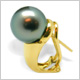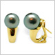 These elegant Tres Jolie earrings are set in high polish 18K yellow gold weighing a total of 5.33 grams. Each 9.75mm pearl has a black green overtone and is AAA quality. These beautiful earrings are a perfect gift for any occasion. |