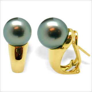 Tres Jolie is an elegant pair of Black Tahitian South Sea Pearl Earrings set with 18K yellow gold high polish finish, weighing 5.33 grams. The Black Green overtone pearl is 9.75 mm in size and is A quality, the highest among the A, B, C and D nomenclature. A pearl of "A" quality is superior and has blemishes of less then 10% of the pearl’s surface. These beautiful earrings are a perfect gift for any occasion. Designed to fit any special occasion this pearl will entice her. |
