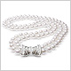 7.5 x 8mm - Generally for younger women, 26 to 29 years This is our #1 best-selling size, and the last size in the lower bracket of more readily available sizes -- a jump to the next size, 8 x 8.5mm, more or less doubles the strand's price. It's really the only size one could call neither "too small" nor "too big." It's a staple of any woman's wardrobe; she can dress it up or dress it down. It's not too showy, and it very tastefully exudes an image of importance -- a classic for the upwardly mobile career woman. It also suits very well as a wedding-day gift or a wedding anniversary gift through the fifth year of marriage.